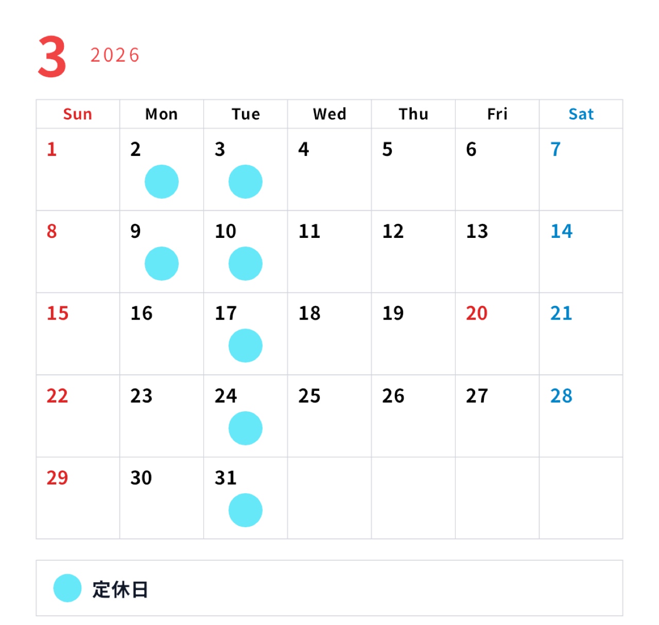 holiday 毎週火曜日+第1第3月曜日