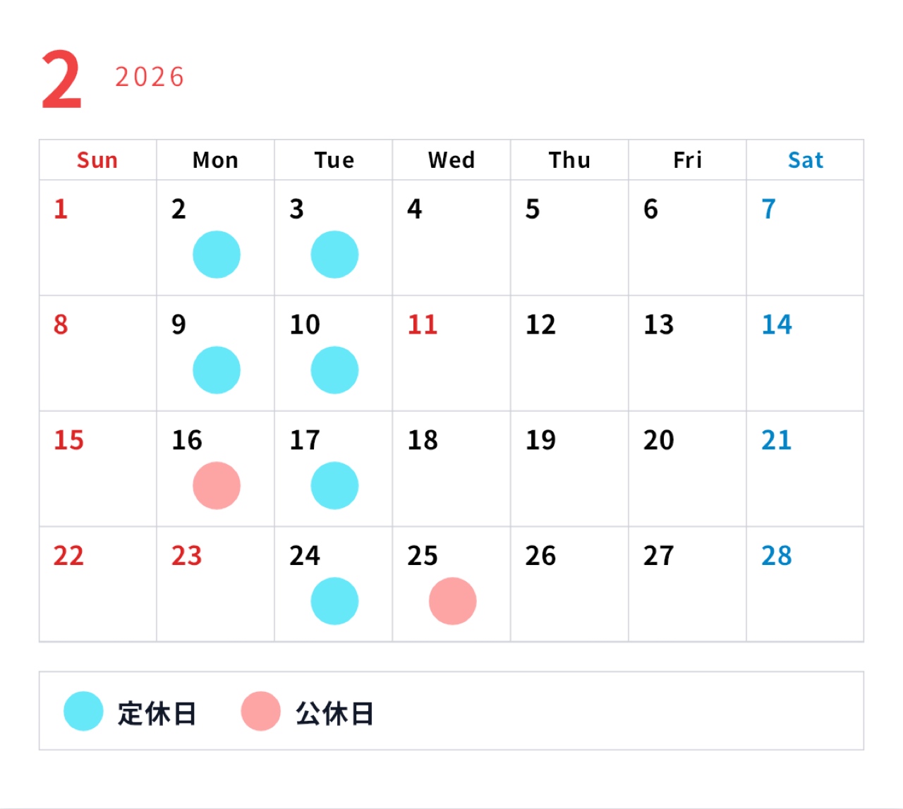 - 定休日